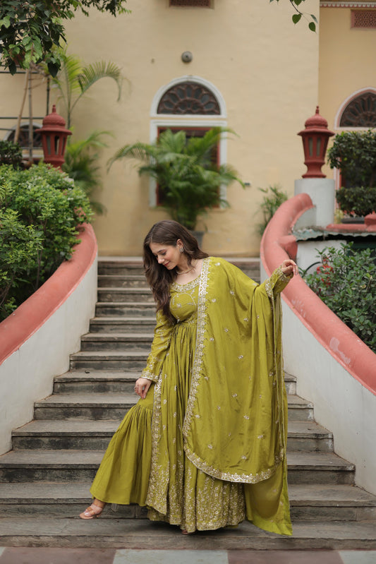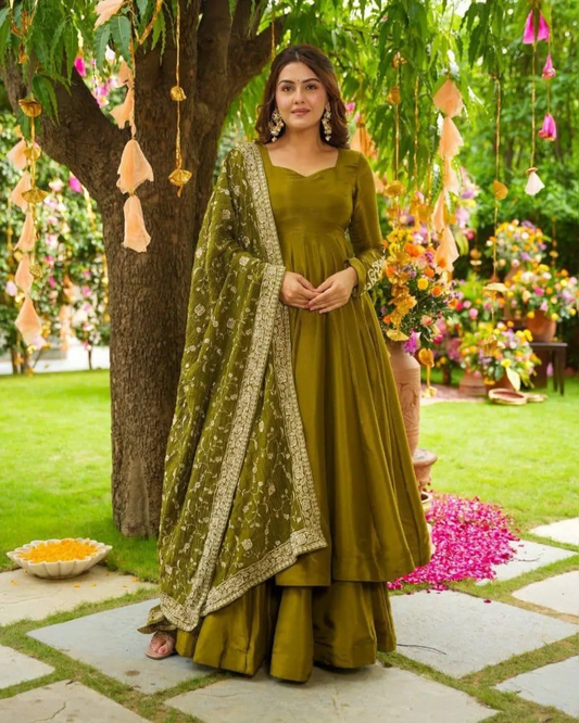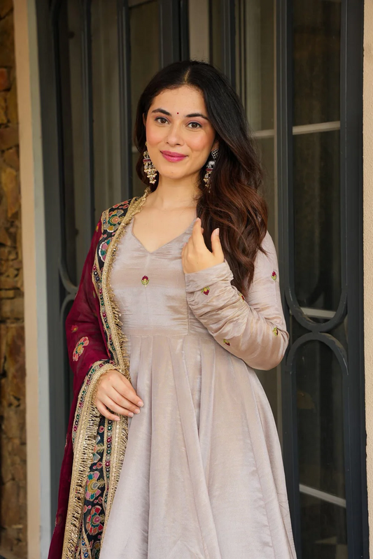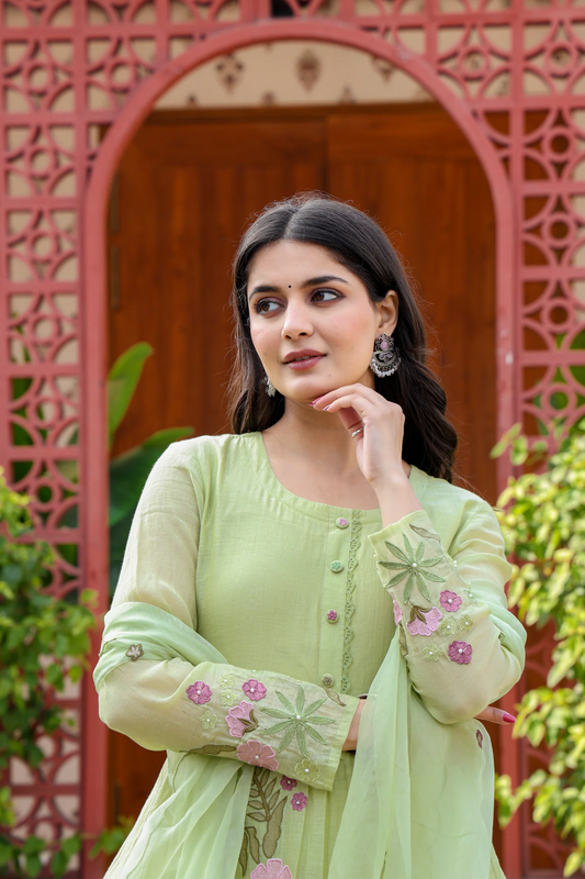 Soft Silk Organza Embroidered Kurta Pants with Dupatta (Set of 3)