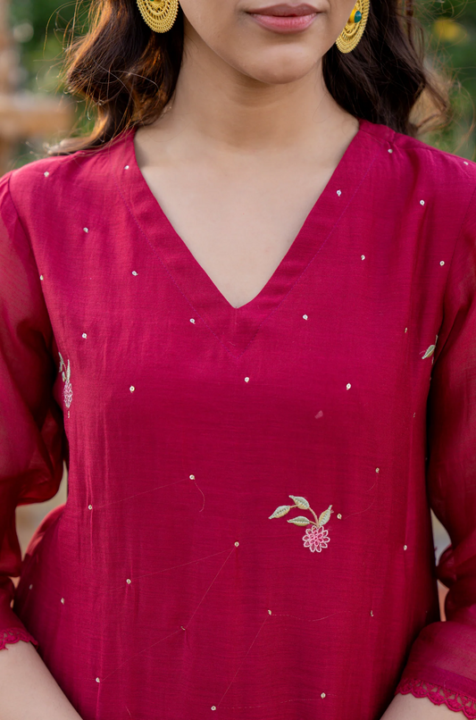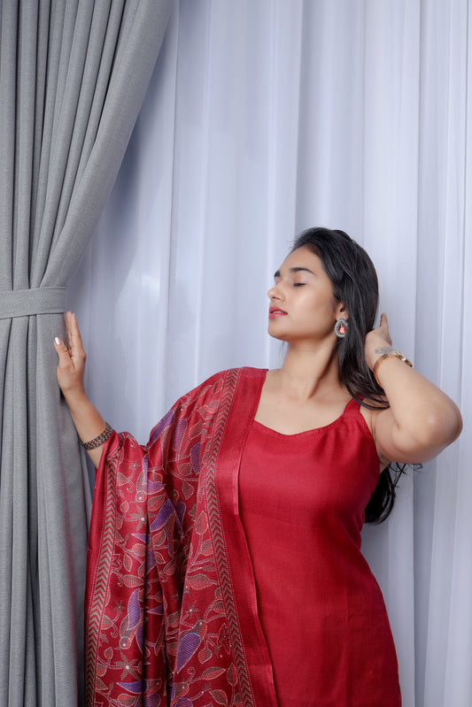 Maroon Shoulder Straps Kurta Pant with Kalamkari Dupatta