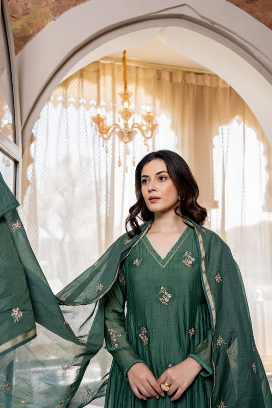 Mul Chanderi Embroidered Anarkali Suit With Hand Work