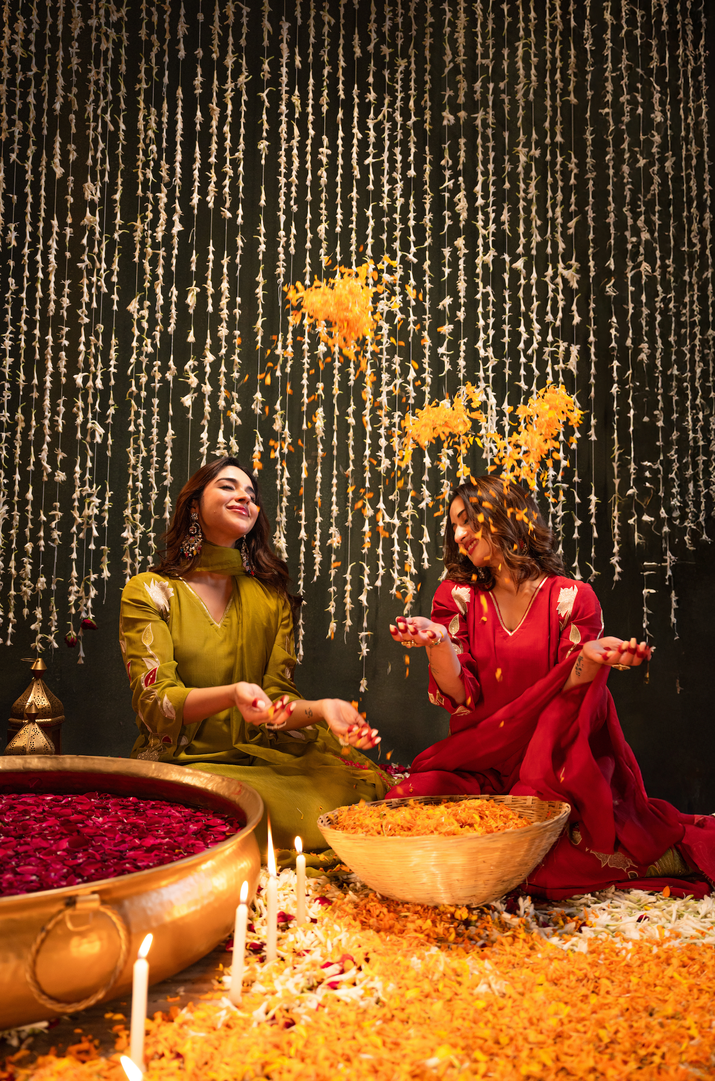 Ruby Crush Chanderi Embroidered Applique Work Suit Set