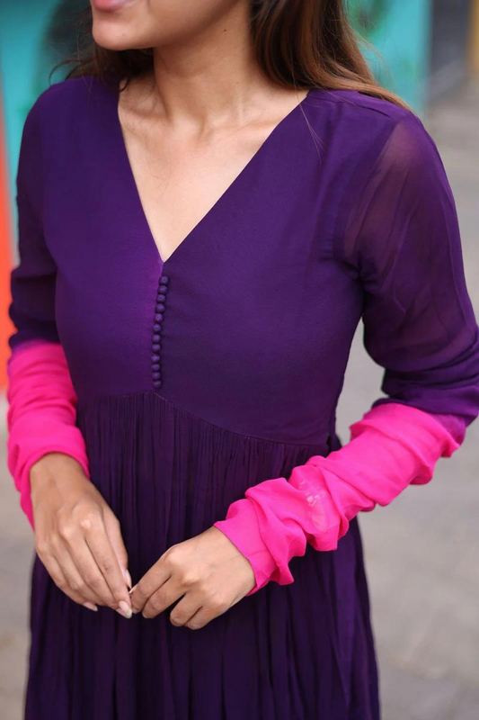 Mul Chanderi Embroidered Anarkali Suit With Hand Work