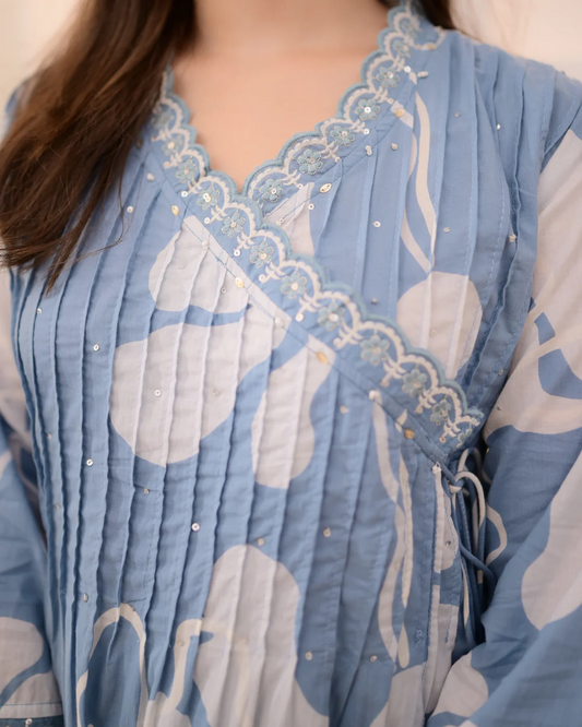 Powder Blue Breeze Thread Work Cotton Suit Set