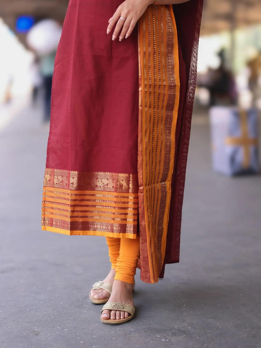 Maroon & Mustard Orange Kanchi Cotton Kurta Set