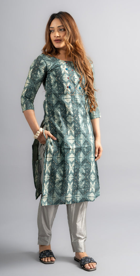 Soft Silk Organza Embroidered Kurta Pants with Dupatta (Set of 3)