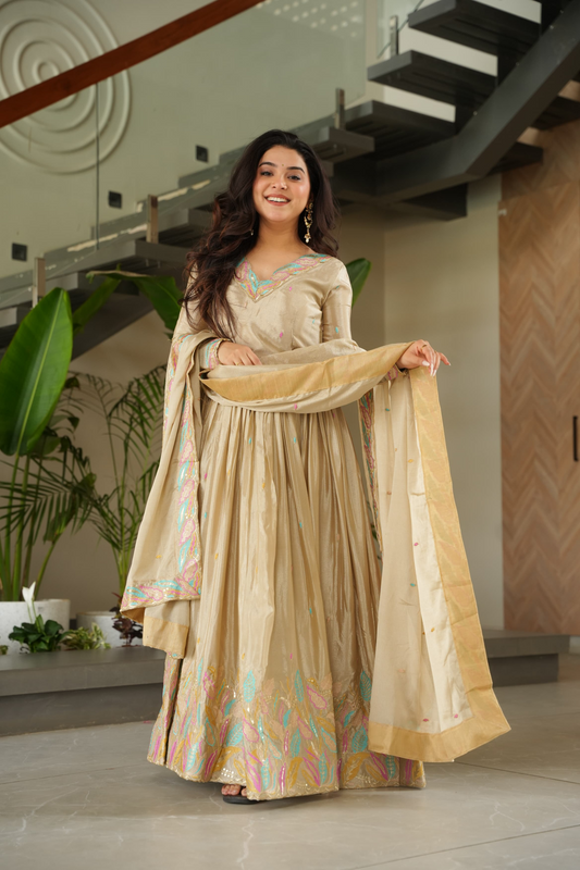 Haldi Special Georgette Embroidered Gown (2 Colors)