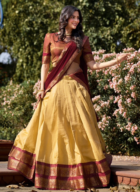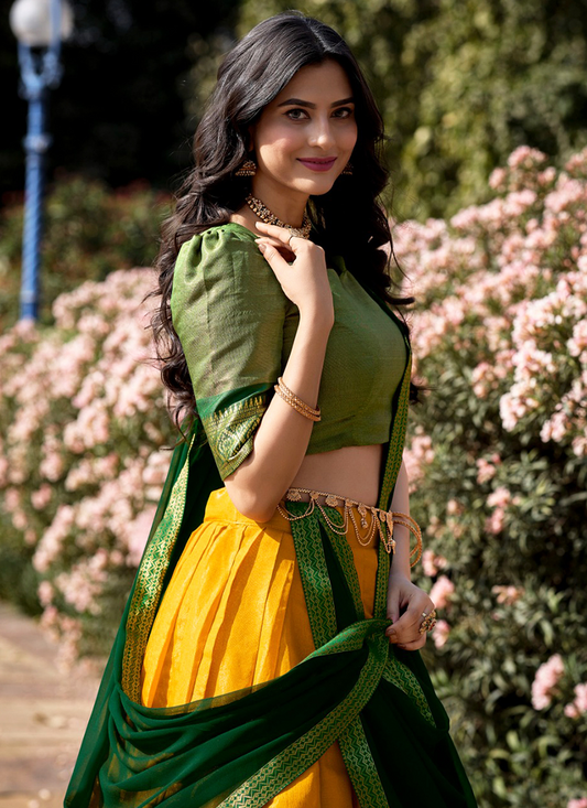 Yellow Kanchipuram Weaving Traditional Wear Lehenga Choli