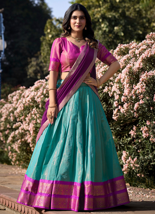 Sky Blue Kanchipuram Weaving Traditional Wear Lehenga Choli