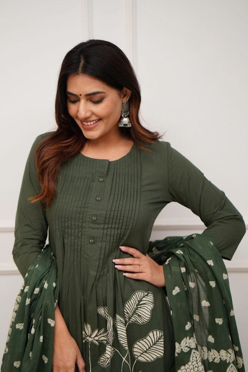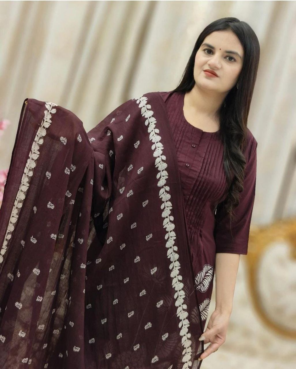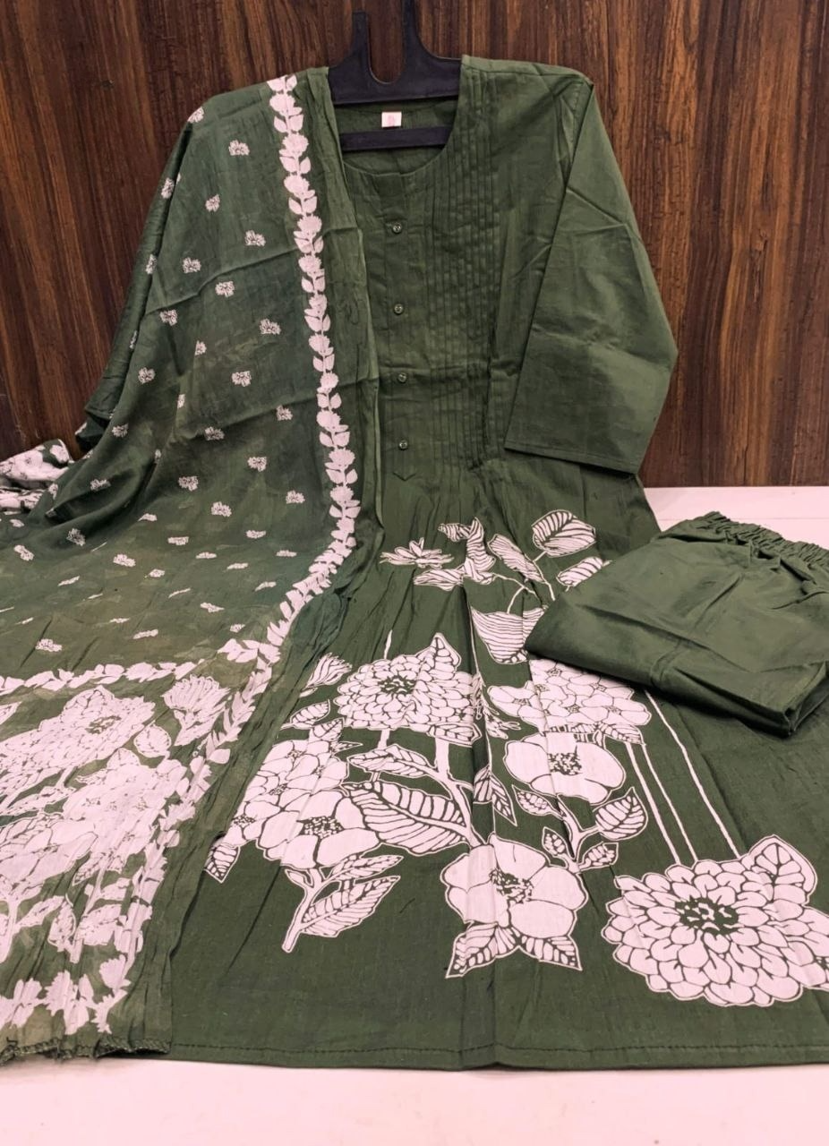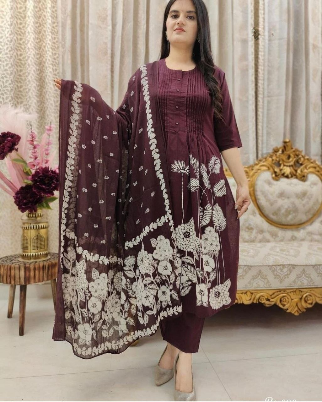 Beautiful Cotton Floral Printed Kurta Pant & Dupatta Set (2 Colors)