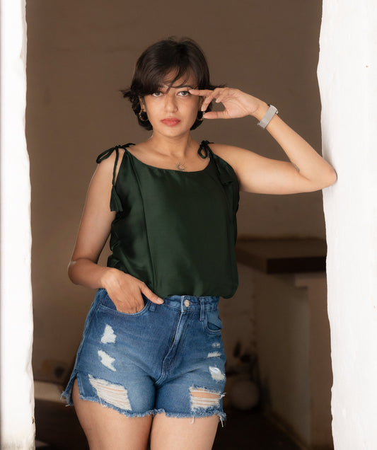 Green Satin Strappy Top