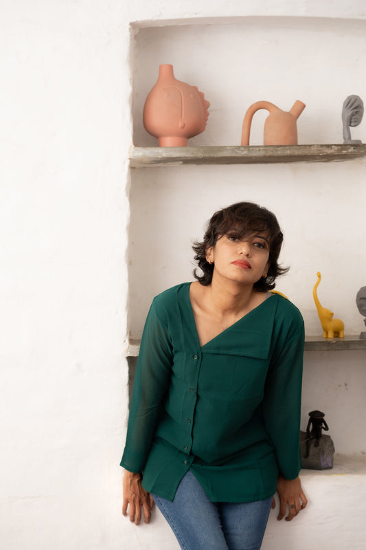 Green Georgette Office Wear Top