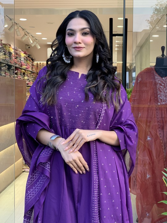 Voluminous Cotton Embroidered Kurta Pant & Dupatta