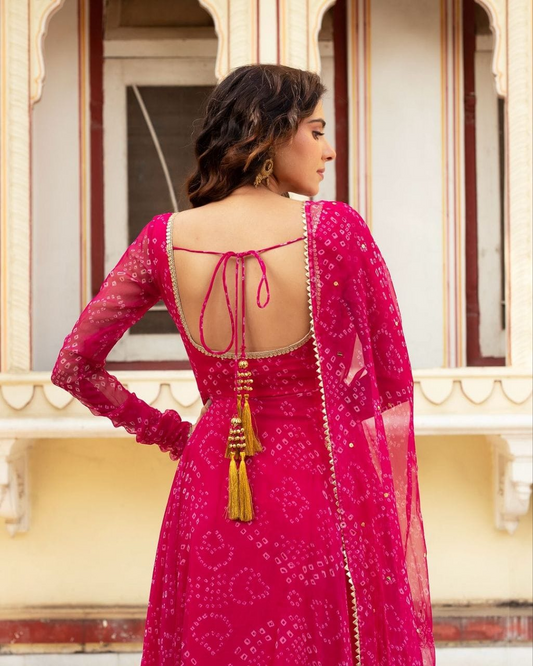 Pink Bandhani Printed Anarkali Suit