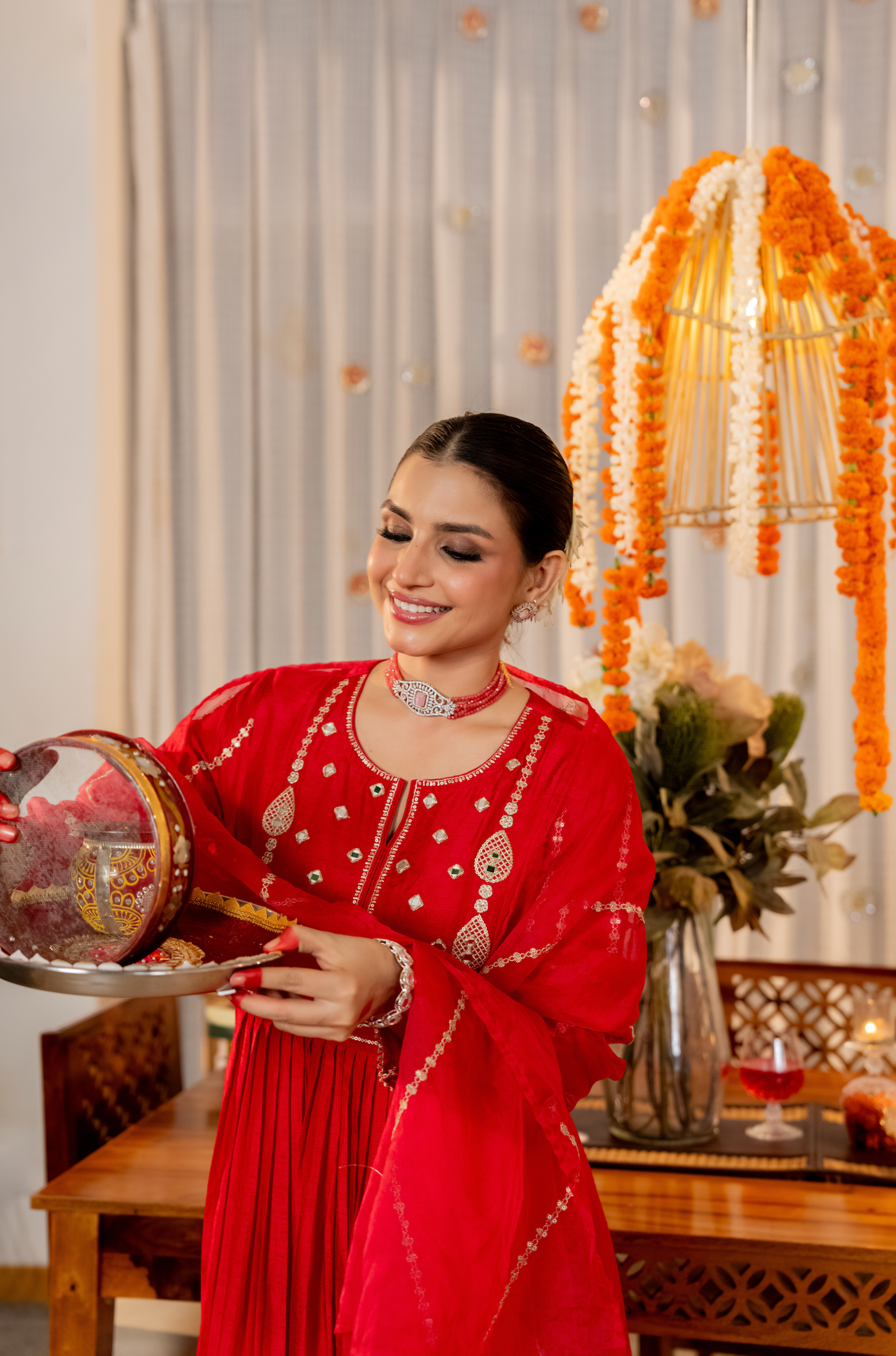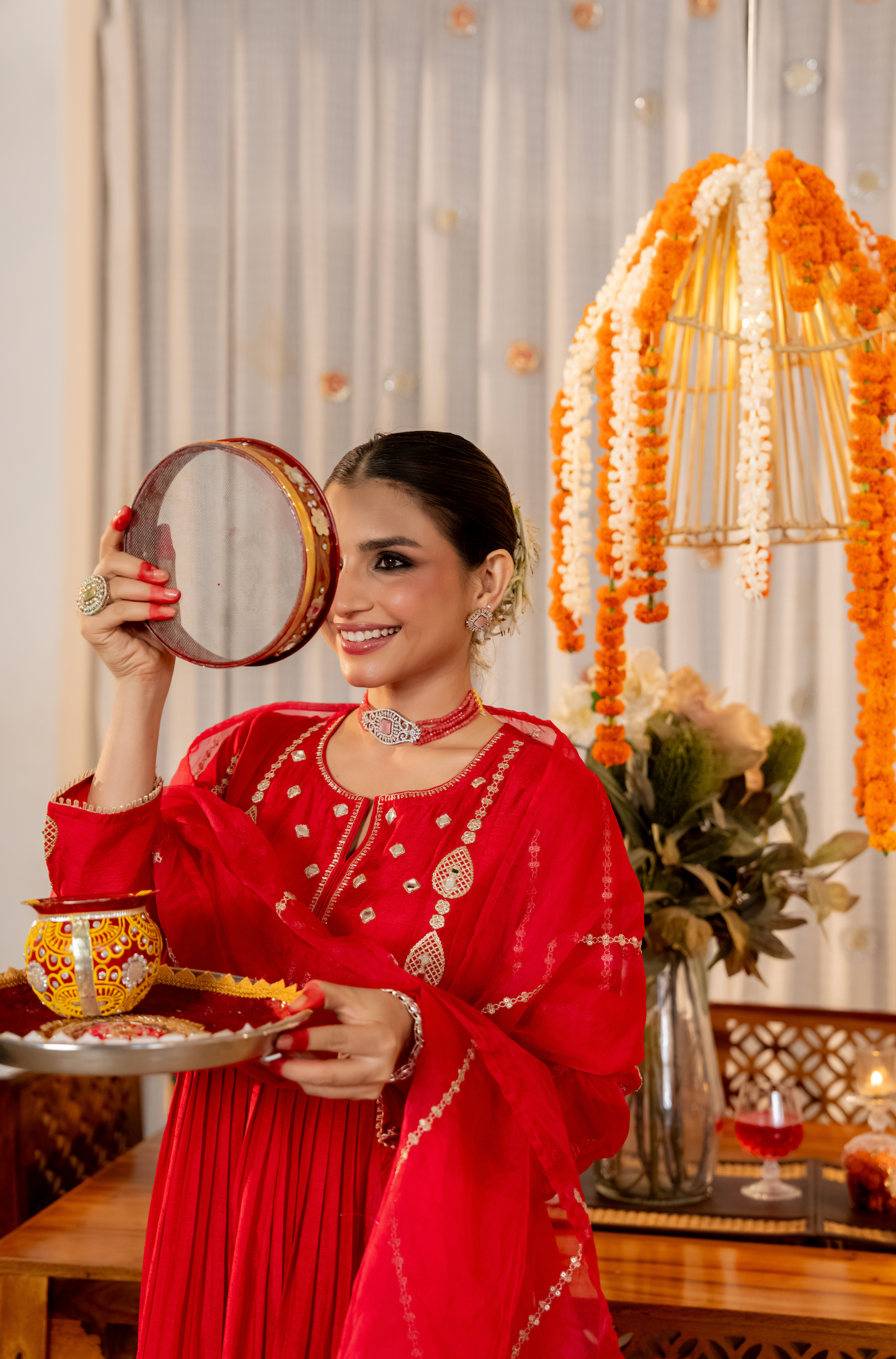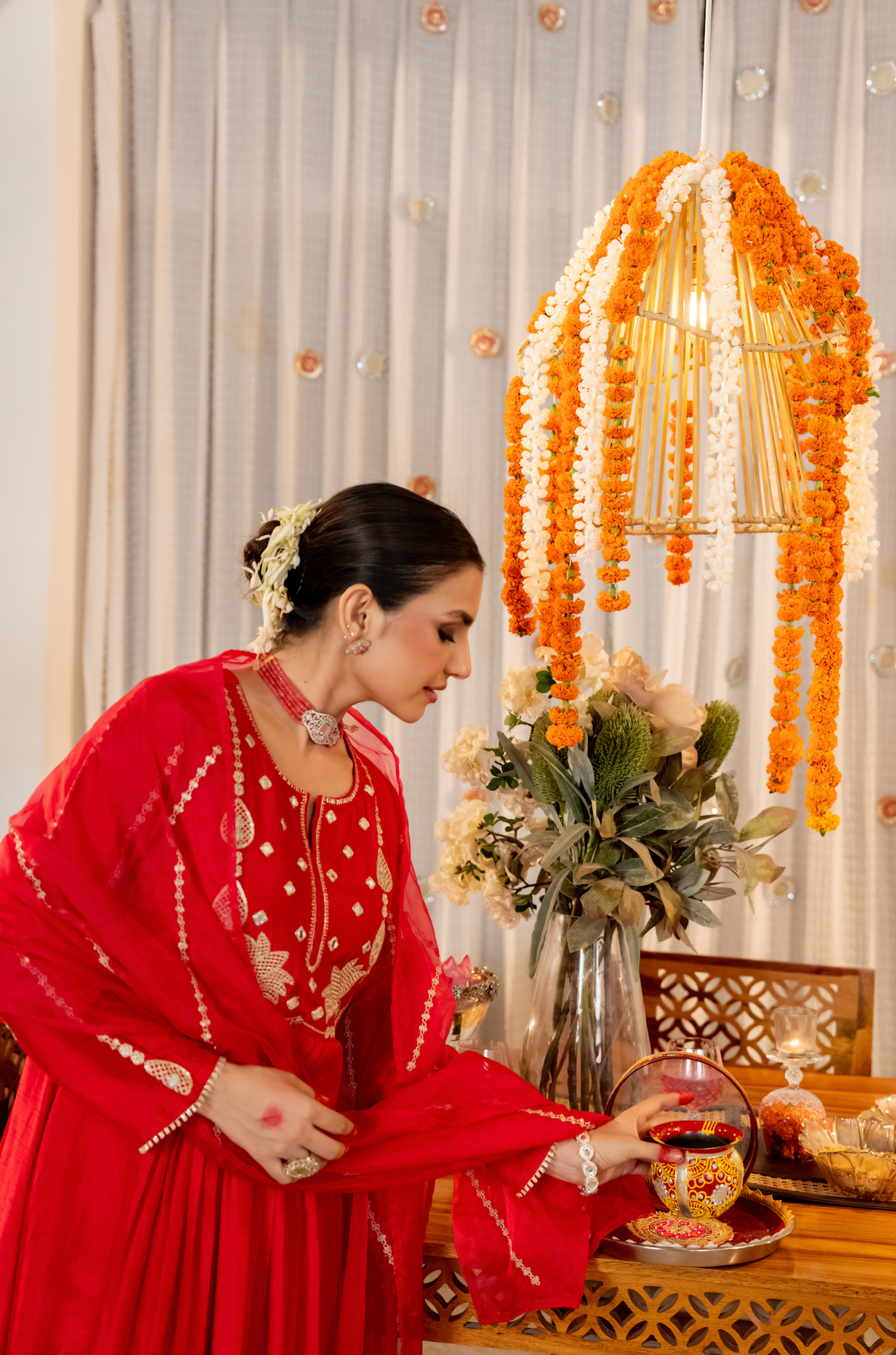 Dupatta : Pure organza dupatta with machine-embroidered detailing
